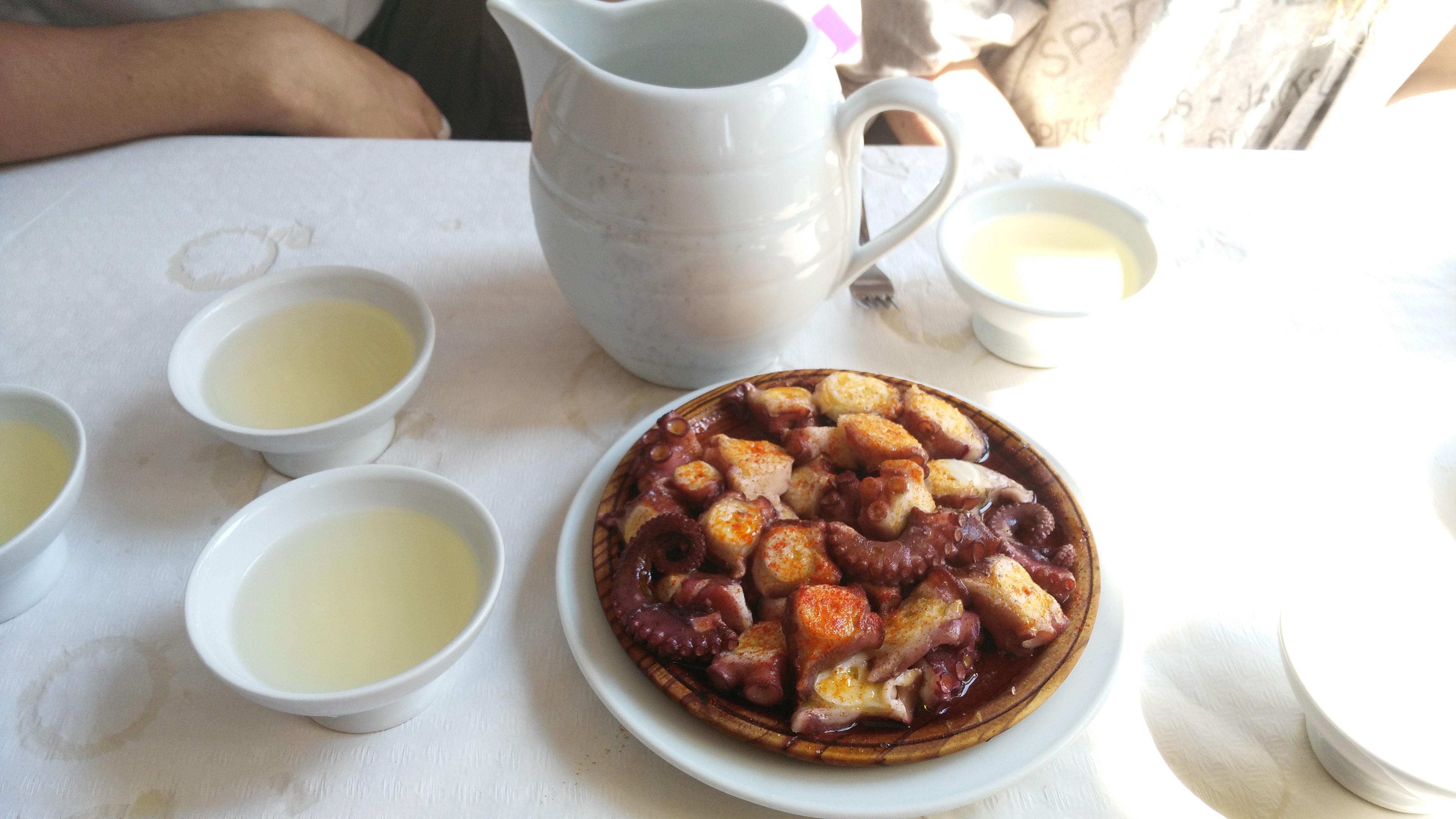 I com no, portem els amichis a fer un bon dinar: un bon pop a la gallega i un bon Ribeiro! Sí senyor, ben merescut!